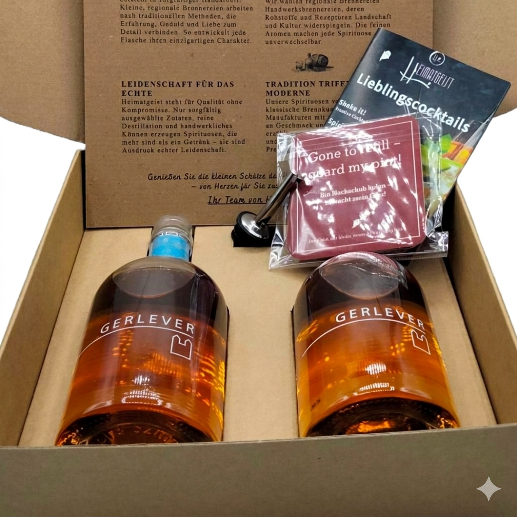 Die Gerlever Geschenkbox ist eine hochwertige Geschenkidee für Spirituosenliebhaber, Genießer und Freunde besonderer Kräuterliköre. Durch die Kombination aus zwei edlen Likören, praktischem Zubehör und Cocktailinspiration eignet sie sich ideal als Präsent zu Geburtstagen, Feiertagen oder als stilvolles Mitbringsel.
