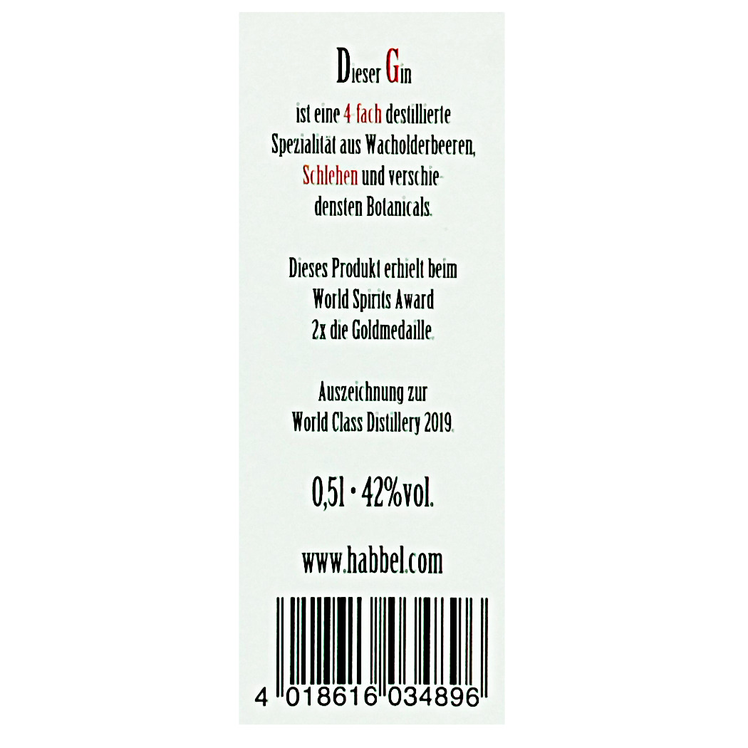 Produktinformationen "Habbel Gin 0,5l Flasche 42% Vol."