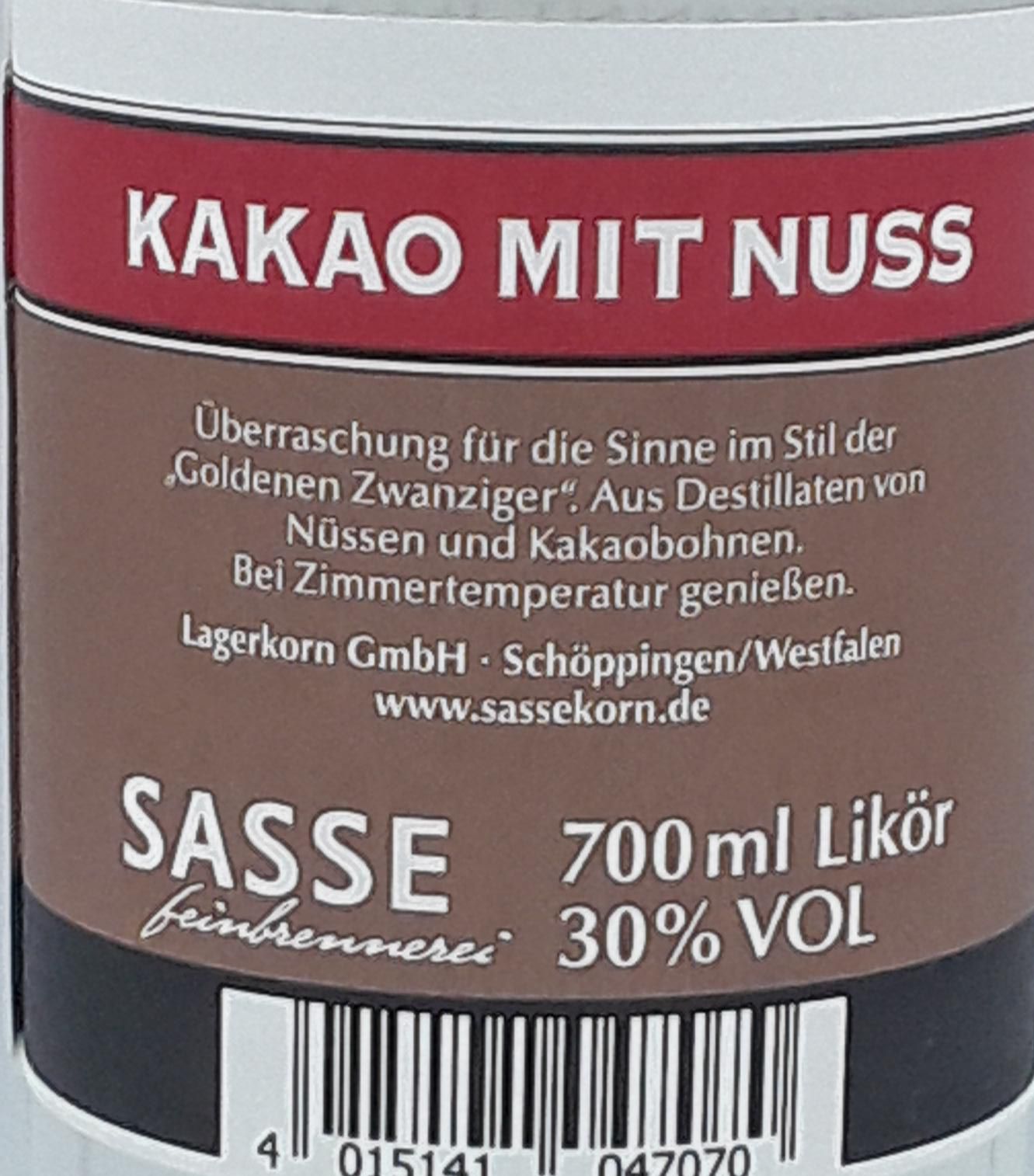 Kakao mit Nuss verblüfft Ihre Sinne im Stil der "Goldenen Zwanziger". Nüsse und Kakaobohnen sind einfach wie füreinander gemacht. Das beweisen nicht nur diverse Brotaufstriche und Süßwaren, sondern auch unser Kakao-mit-Nuss-Likör von Sasse Die eingesetzten Rohstoffe werden bei uns zu einem geschmacklich aufregenden Destillat verbunden.