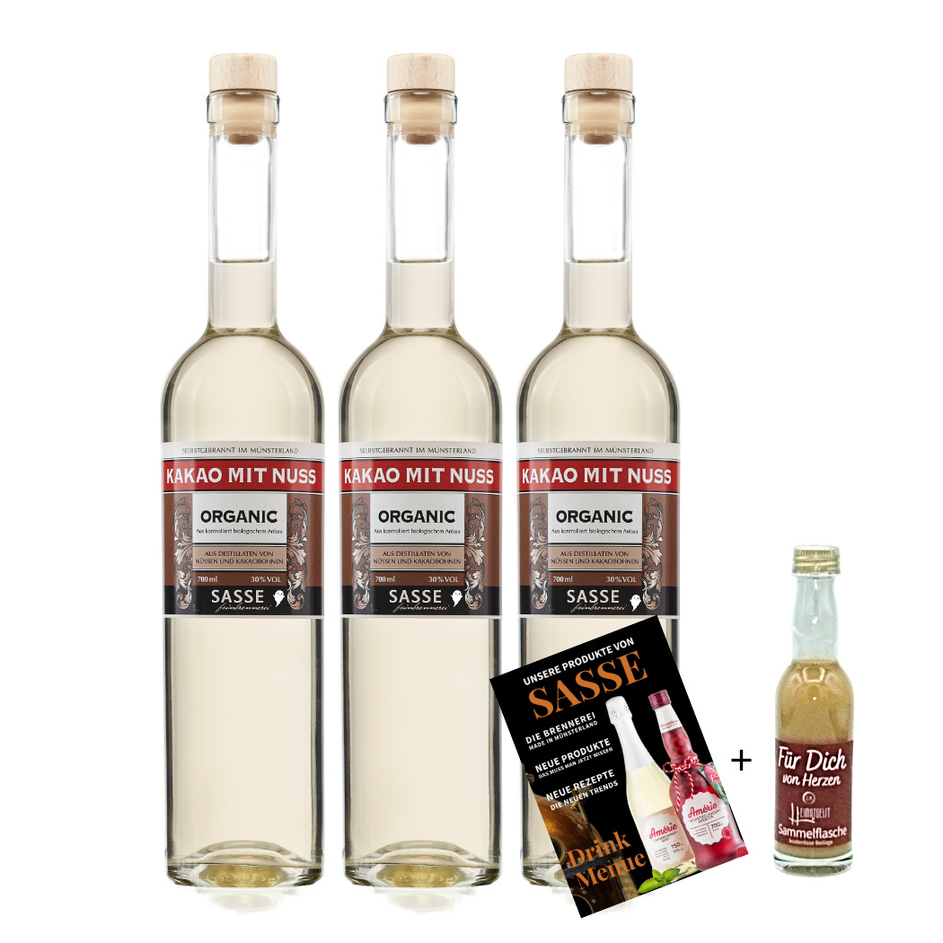 Produktinformationen "Kakao mit Nuss Likör 30% 3 x 0,7 ltr. + miniatur Probeflasche"