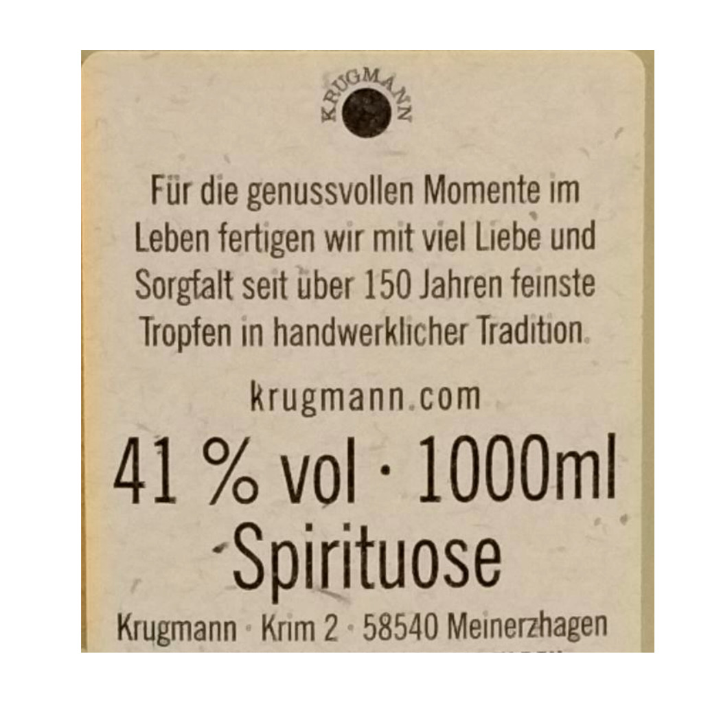 - Verantwortlicher Lebensmittelunternehmer: Krugmann Markenspirituosen GmbH & Co.KG