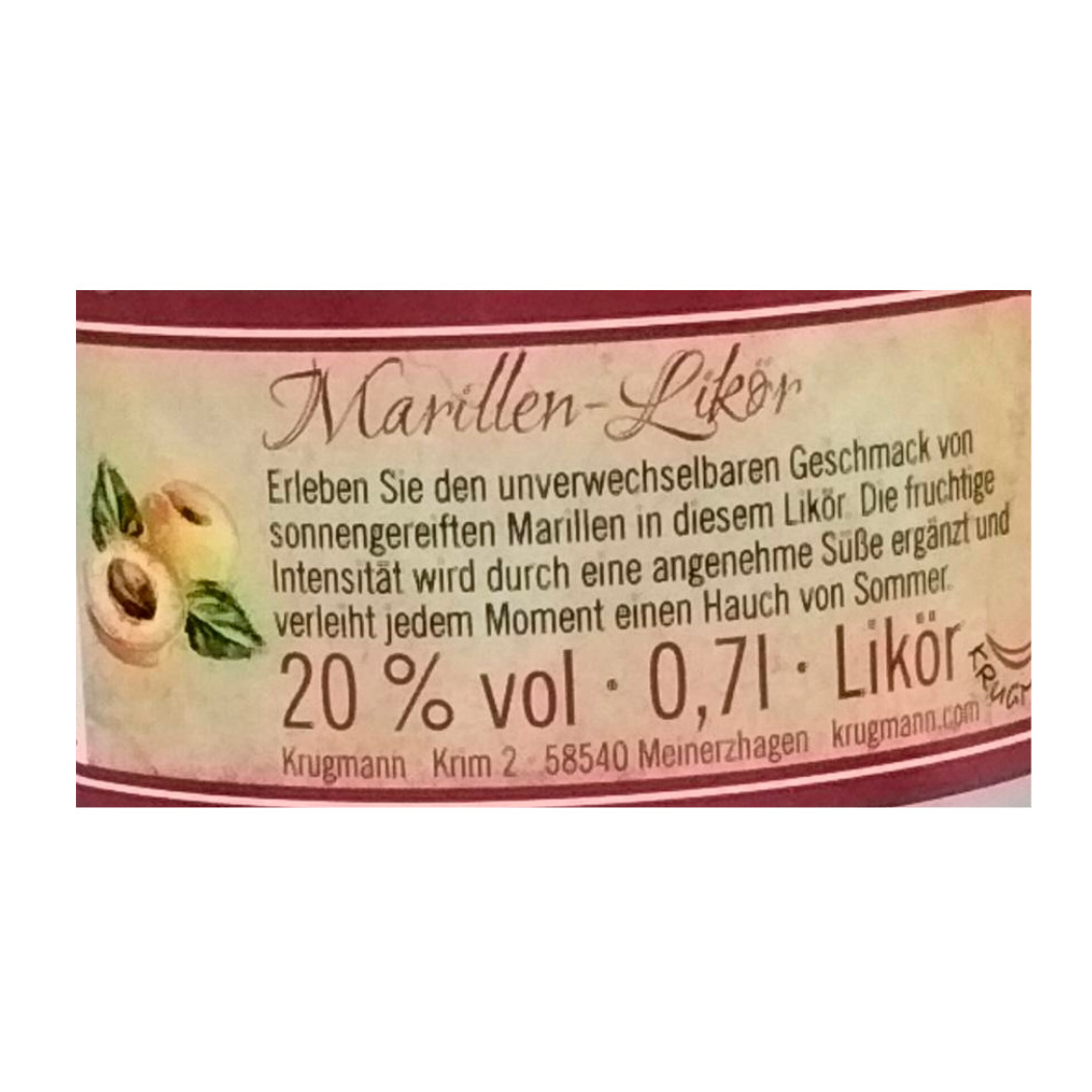 Krugmann Marillenlikör 20% Vol. 0,7l – Fruchtige Eleganz mit einem Hauch Sommer