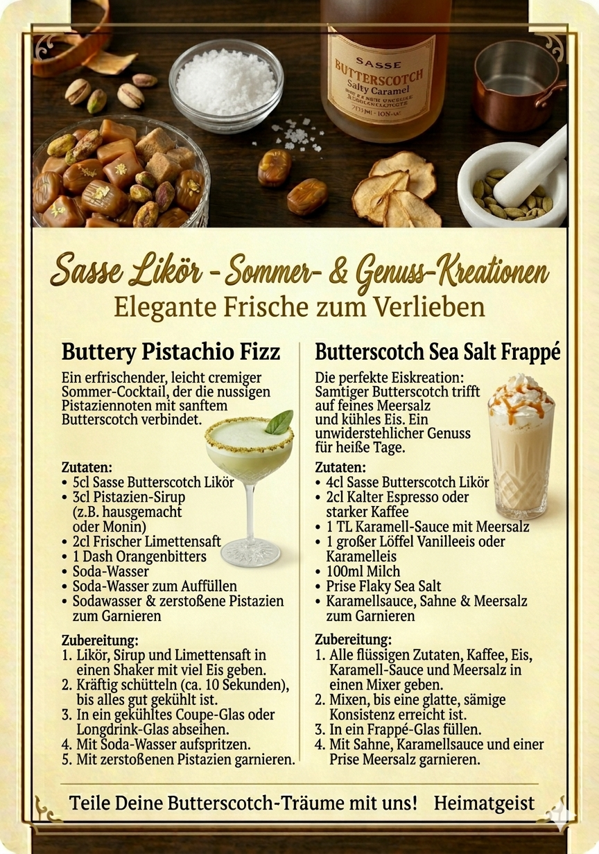 Butterscotch Likör von Sasse –2 x Heimat inkl Cocktail Rezeptkarte
