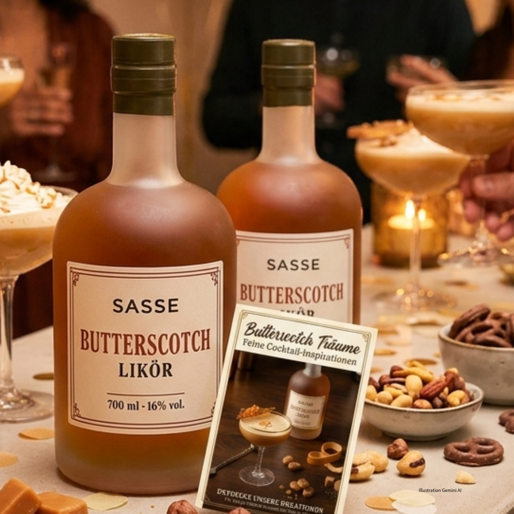 Verschenke Genuss und Wärme zugleich: Der Butterscotch Likör von Sasse ist ideal für Freunde, Familie oder als besondere Aufmerksamkeit für Genießer, die das Besondere und Heimatverbundene schätzen.