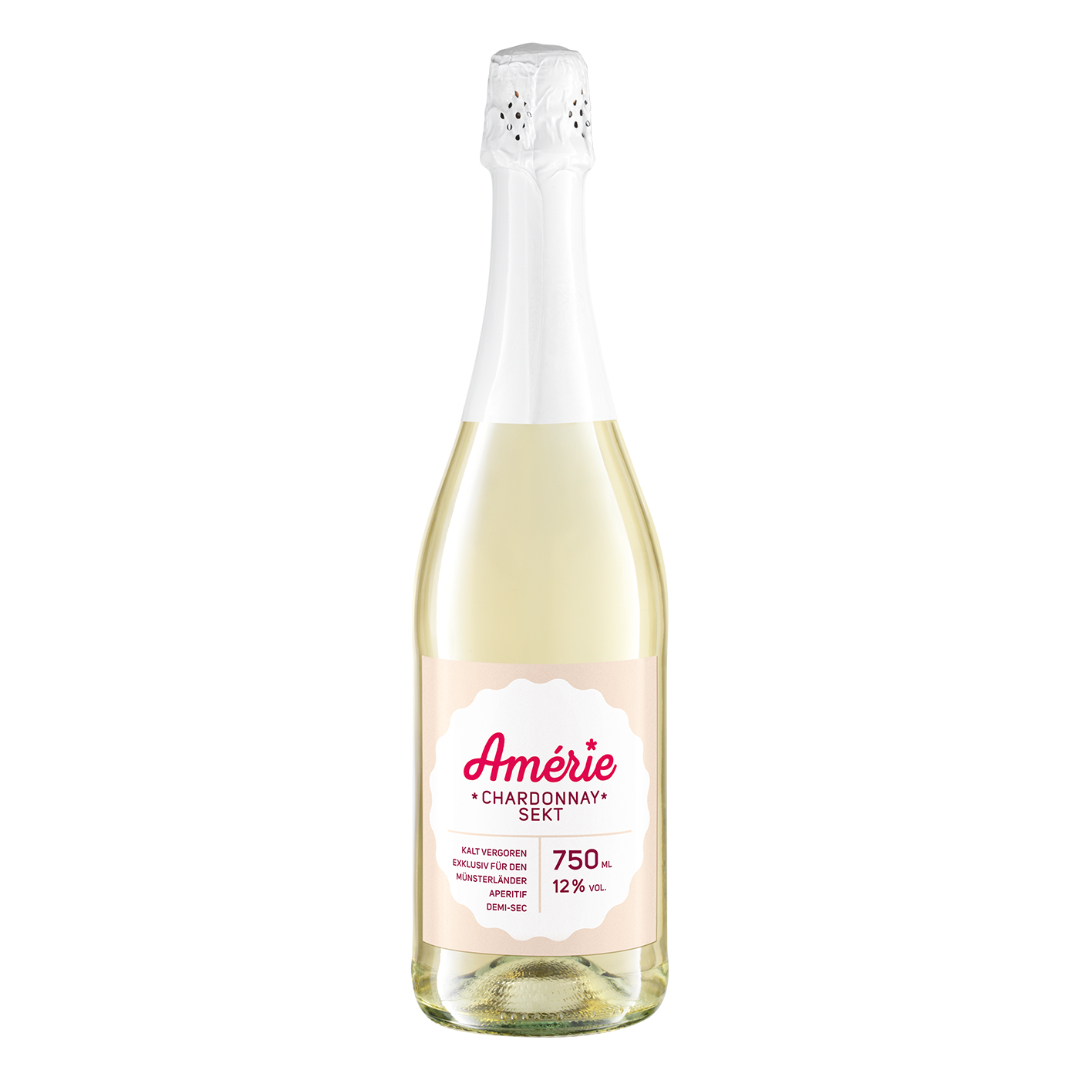 Die perfekte Ergänzung im Set! Der Amérie Chardonnay Sekt besticht durch seine feine Perlage und eine wunderbare Balance. Kalt vergoren und exklusiv für den Münsterländer Aperitif abgestimmt, bringt er eine edle Frische ins Glas.