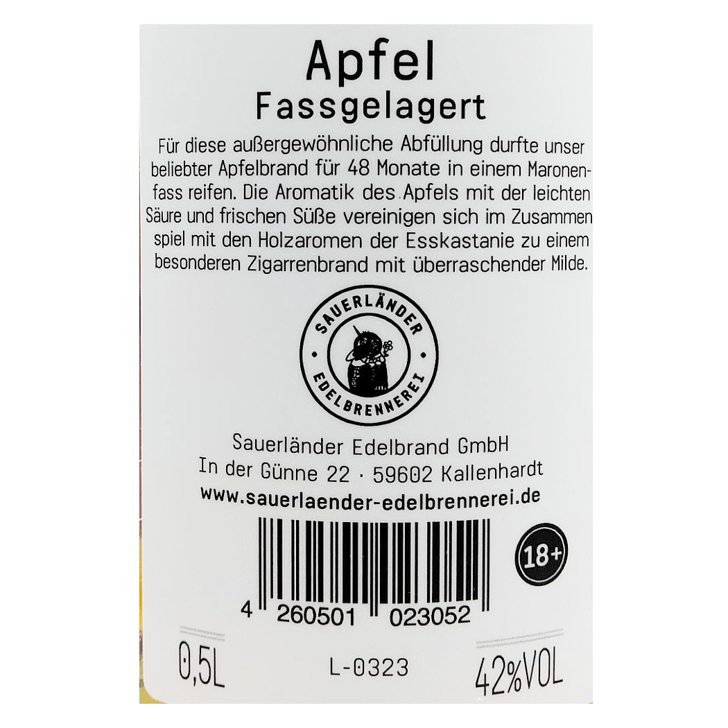Apfelbrand – Holzfassgelagert (0,5 l | 42 % Vol.)