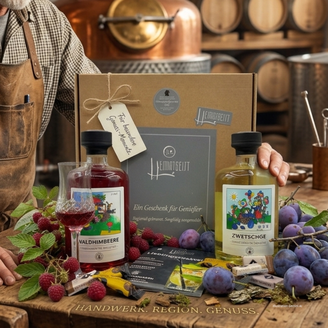 Spirituosen Geschenkset, Zwetschgenbrand Holzfassgelagert, Waldhimbeergeist kaufen, Edelbrand Geschenk, hochwertige Spirituosen, Obstbrand Geschenkset, Sauerländer Edelbrennerei, Digestif Geschenkidee, Premium Spirituosen Deutschland