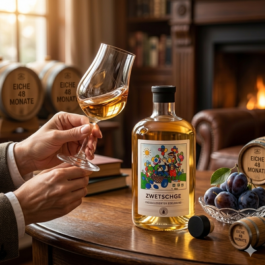 - Zwetschgenbrand mit Holzfassreife & Vanillenoten